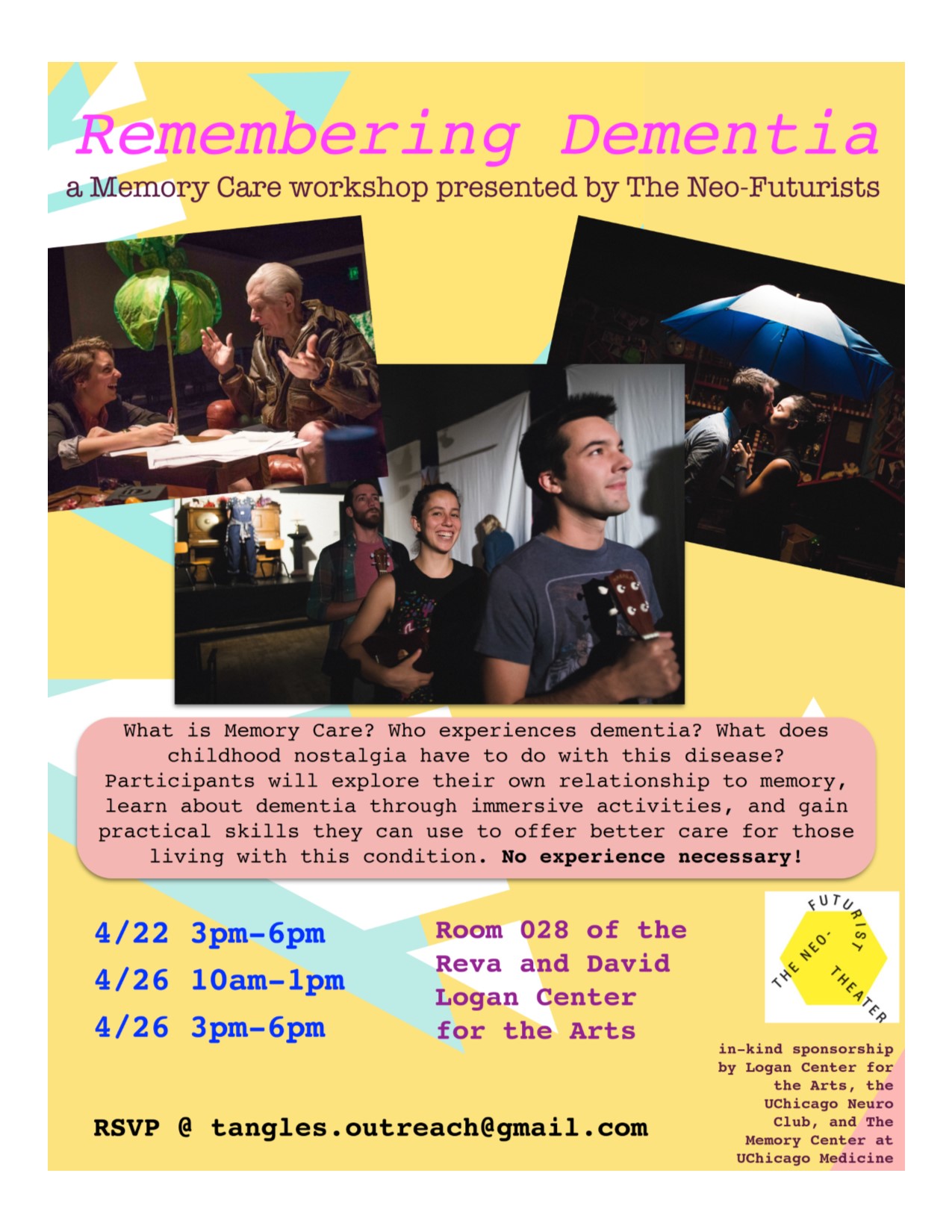 This workshop is made possible by in-kind sponsorship by Logan Center for the Arts, the UChicago Neuro Club, and The Memory Center at UChicago Medicine