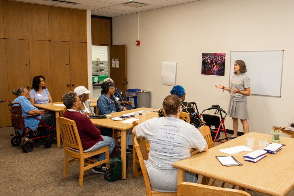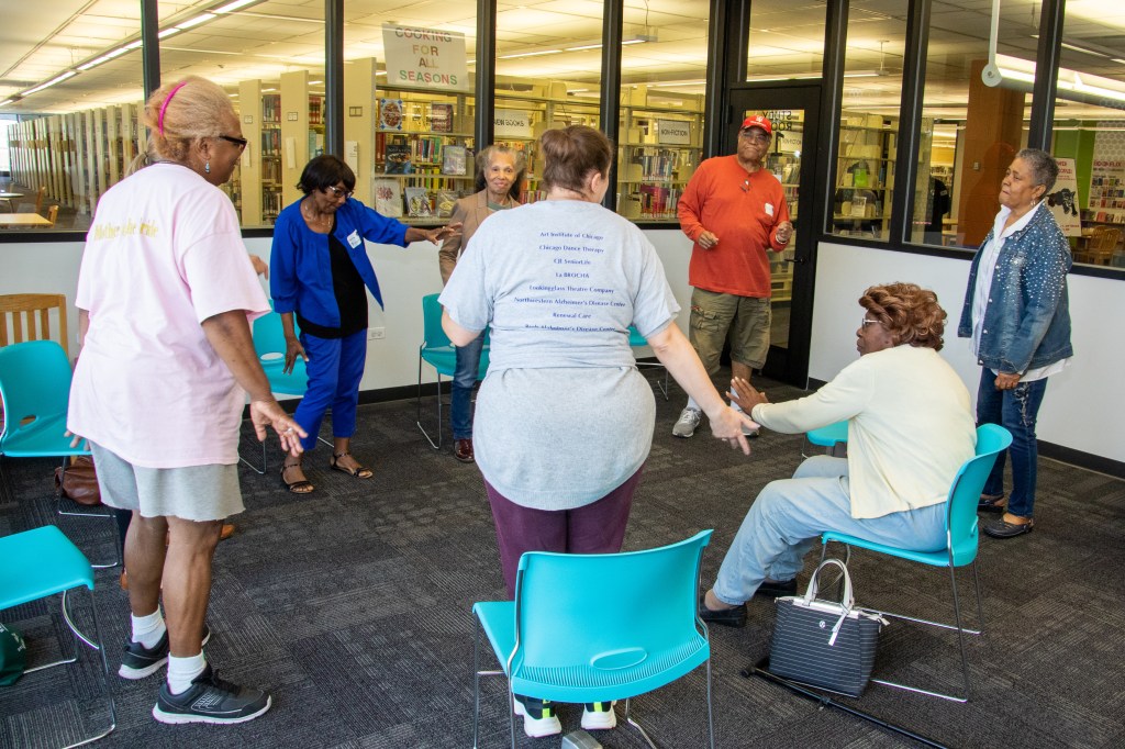 On Saturday, September 7th, the Rush Alzheimer’s Disease Center along with other members of the Arts for Brain Health Coalition sponsored our second 2019 Arts for Brain health event.  It was at the Woodson Regional Library.  The Coalition activates partnerships between healthcare and arts providers, designing and presenting programs that use creative engagement to improve the lives of people with memory loss and those who care for them.  60+ seniors and their guests attended this engaging event.  Participants had the opportunity to attend Art making, Improv, Dance, Yoga or Music classes.   Attendees thoroughly enjoyed this event.