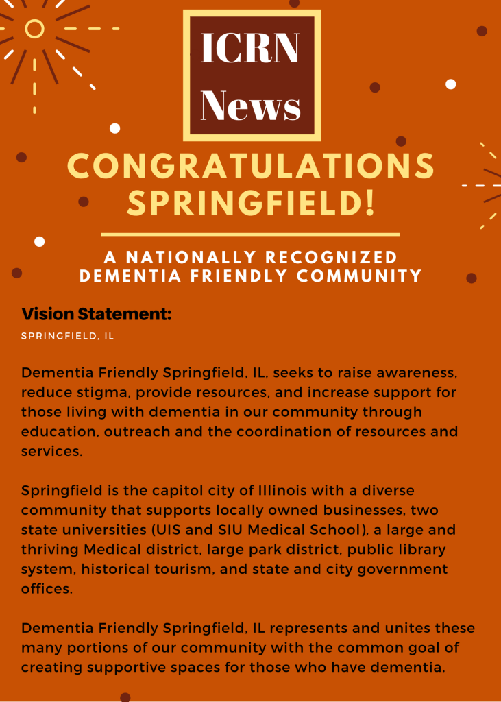 The ICRN Welcomes its 16th Nationally Recognized Dementia Friendly Community: Springfield, IL