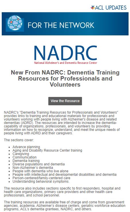 New From NADRC: Dementia Training Resources for Professionals and Volunteers