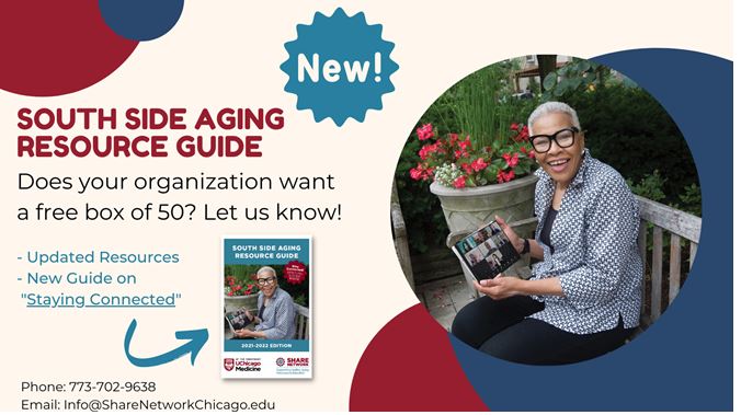 Created by the University of Chicago Medicine’s SHARE Network (Supporting Healthy Aging Resources and Education), this guide contains a list of health resources available for seniors on Chicago’s South Side. The guide is available online and in print form.