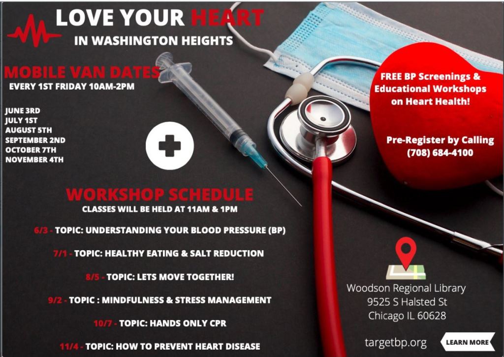 Happening Today!!! Check out the Woodson Regional Library’s new program “Love Your Heart.” Held the first Friday of every month from 10 AM – 3 PM, this event will offer attendees free blood pressure screenings and educational workshops on heart health.