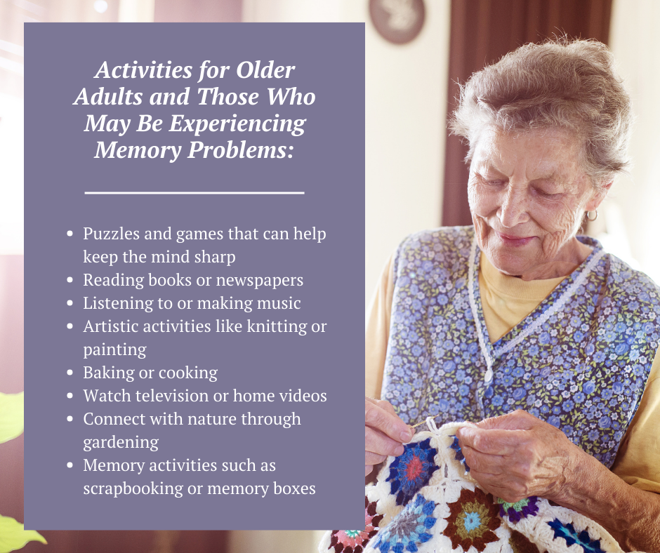 Here are some activity ideas specifically geared towards older adults and those who may be experiencing memory problems: