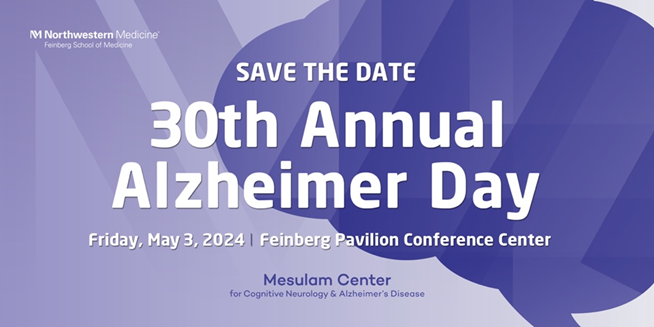 The Mesulam Center for Cognitive Neurology and Alzheimer’s Disease at Northwestern University invites you to join them for the 30th Annual Alzheimer Day on Friday, May 3, 2024. Northwestern Alzheimer Day was established to showcase Alzheimer’s-related dementia and aging research conducted throughout Northwestern and to bring this information to the community.
