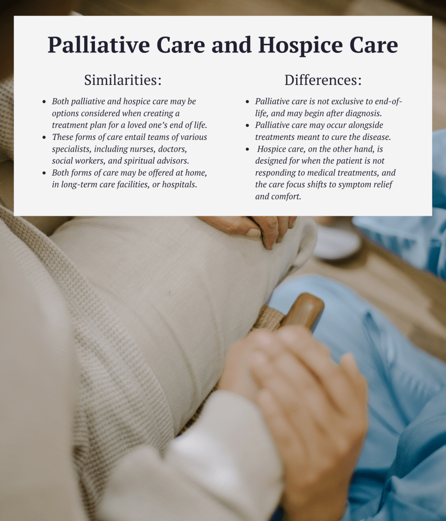 Whether older adults are outlining their end-of-life preferences in advance or a caregiver or family member is making those decisions, several factors may be considered. Two prevalent options are palliative care and hospice care.