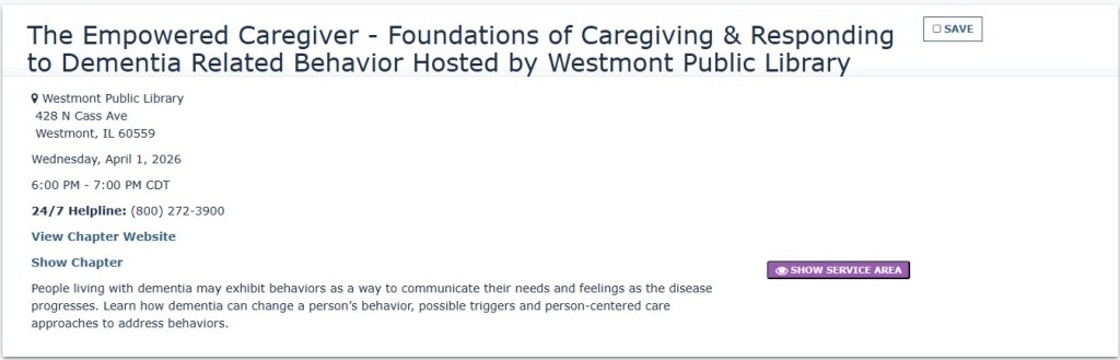 Join the Alzheimer’s Association and the Westmont community on April 1, to learn more about dementia-related behavior and communication. When caregivers focus on understanding the person’s needs, emotions and environment, many challenging behaviors can be reduced or managed compassionately.